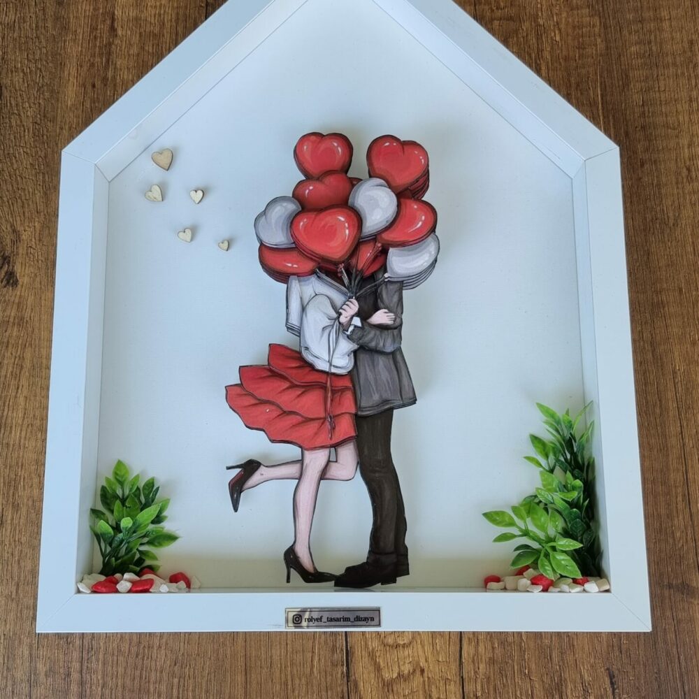 mf-006 Ahşap Panoda Anahtarlık Balonlu Çift Kağıt Rölyef