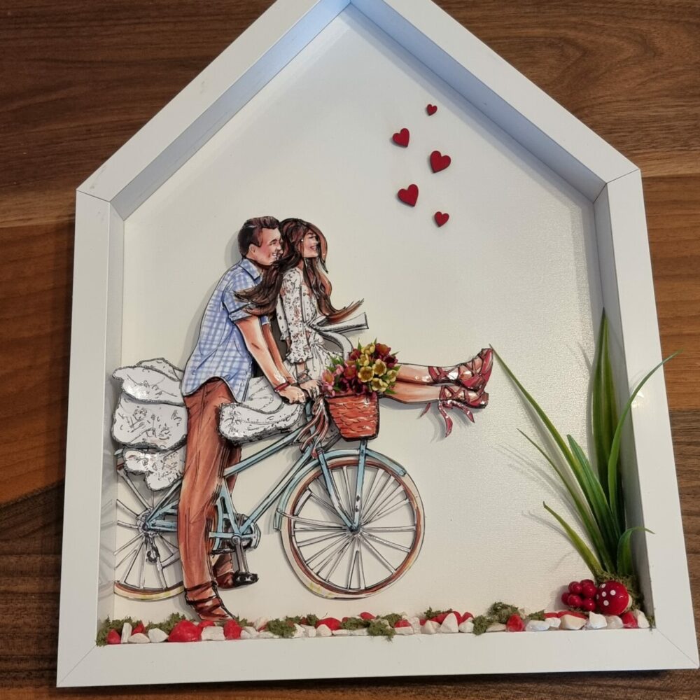 mf-005 Ahşap Panoda Bisikletli Çift Kağıt Rölyef