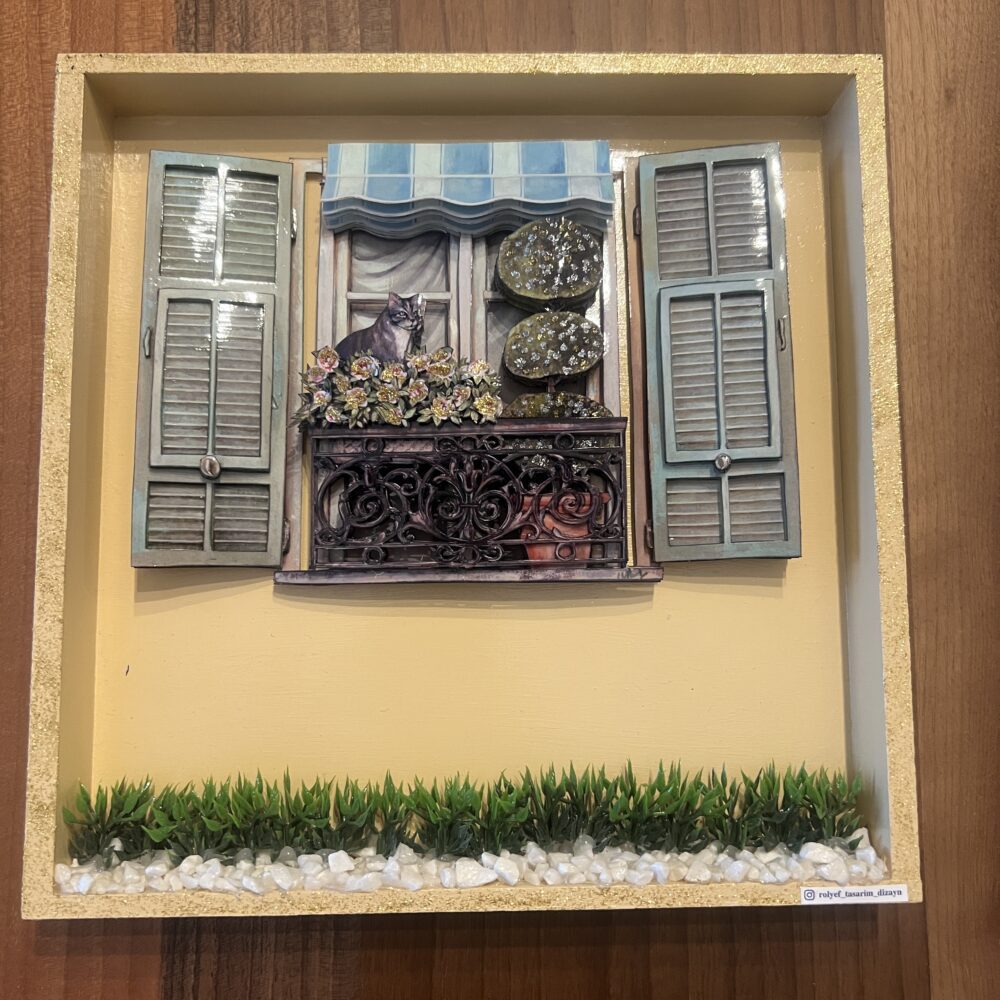 mf-003 Ahşap Panoda Anahtarlık Balkonlu Kağıt Rölyef