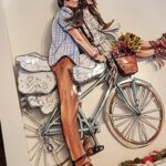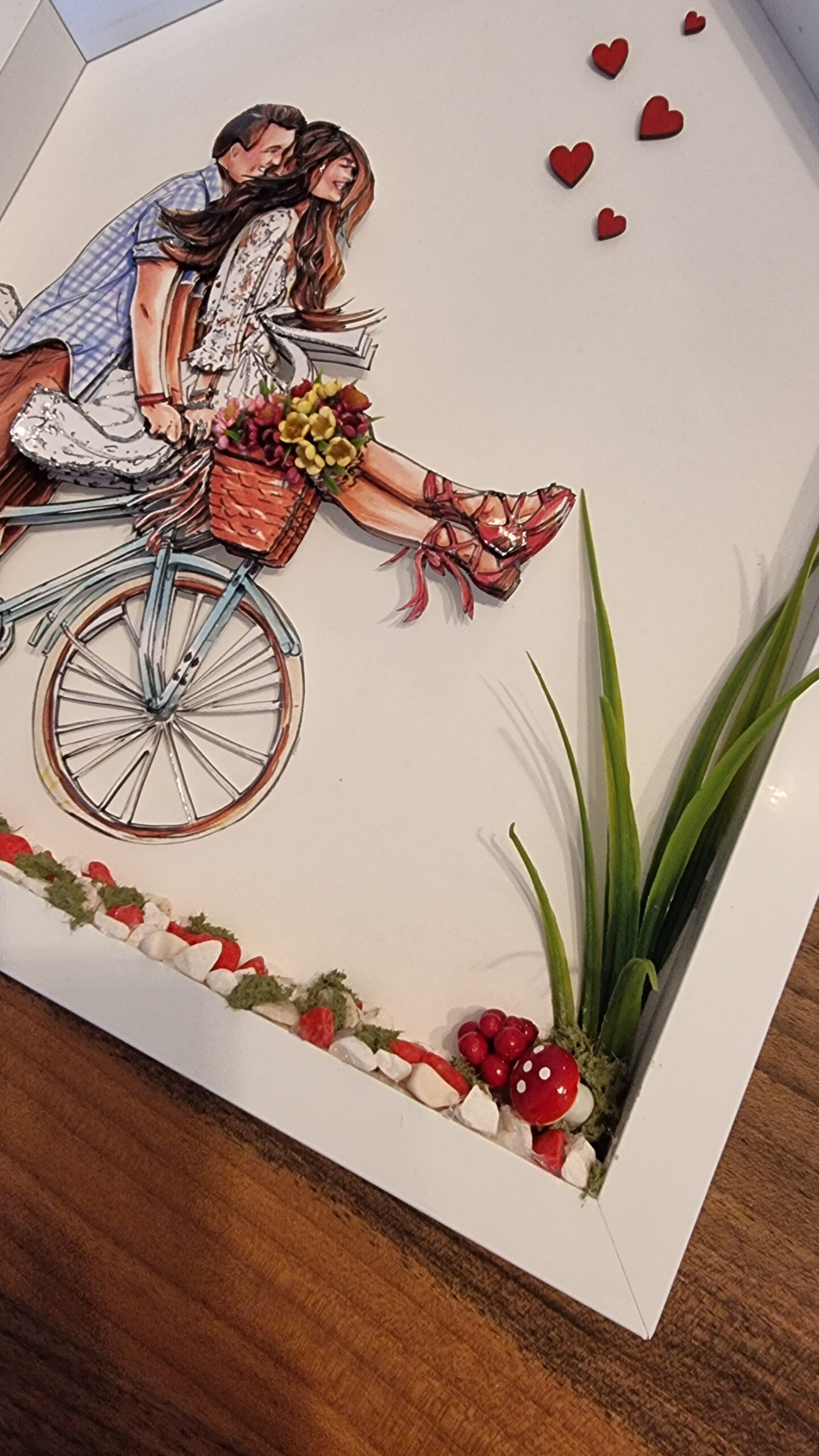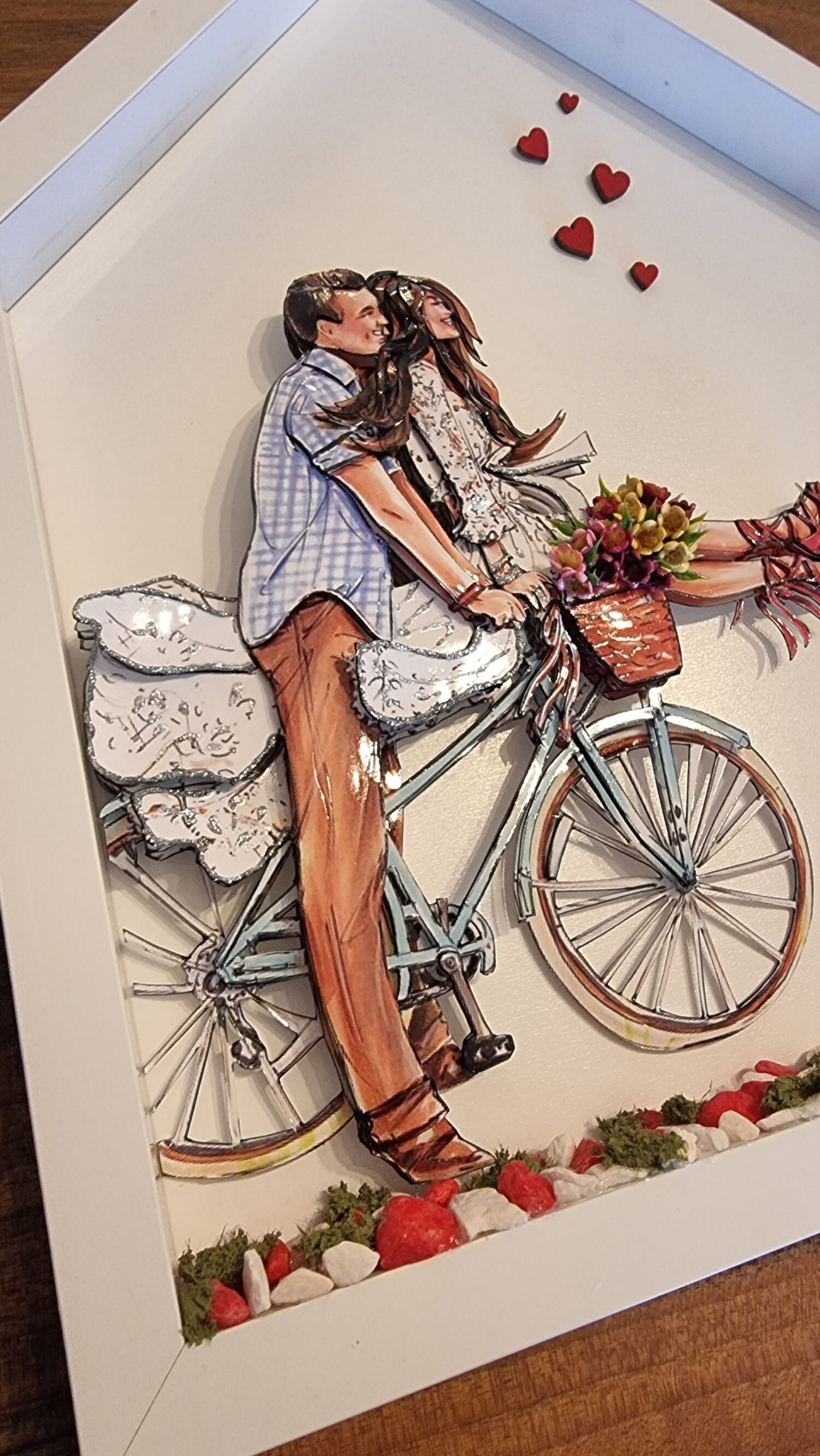 mf-005 Ahşap Panoda Bisikletli Çift Kağıt Rölyef