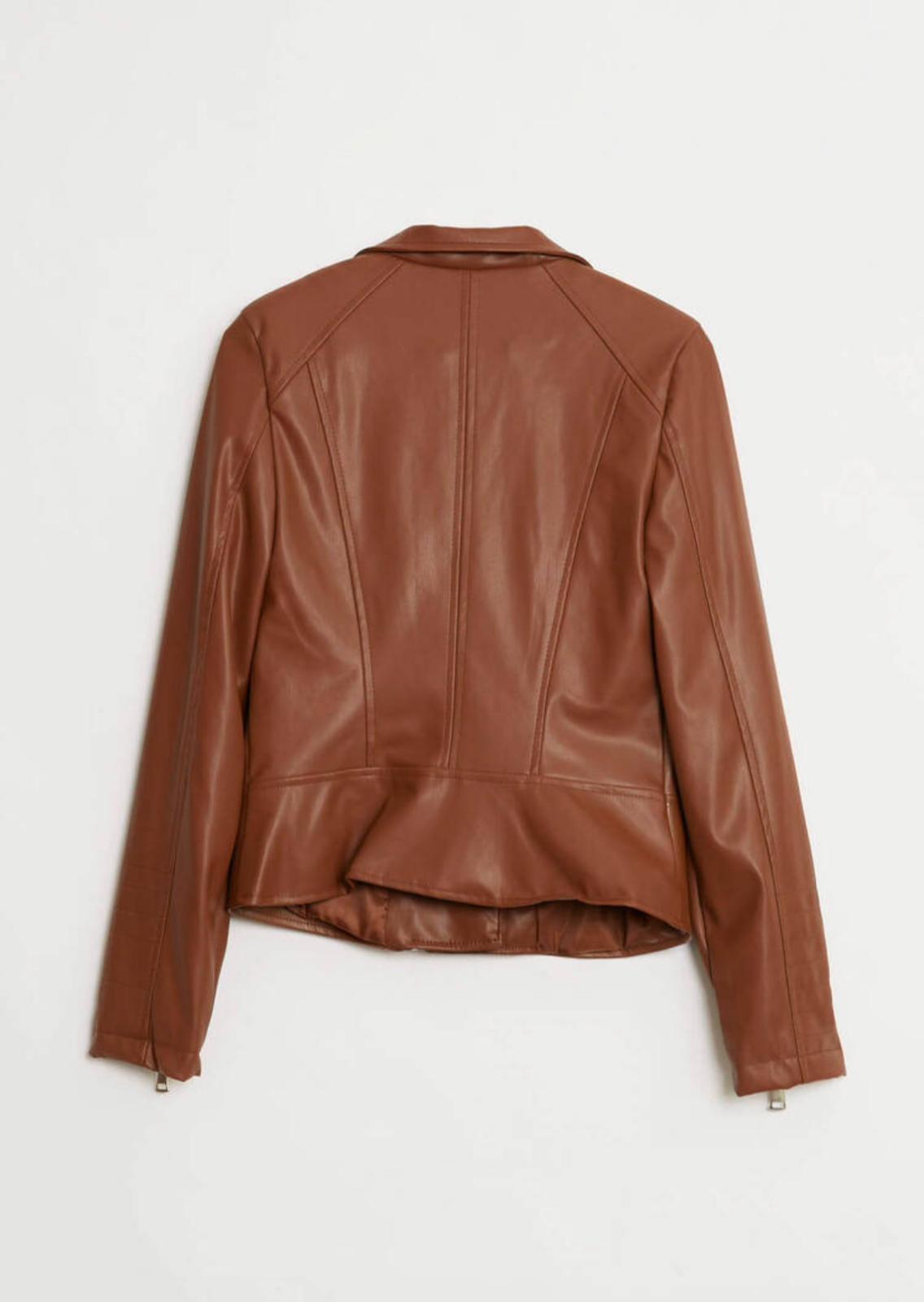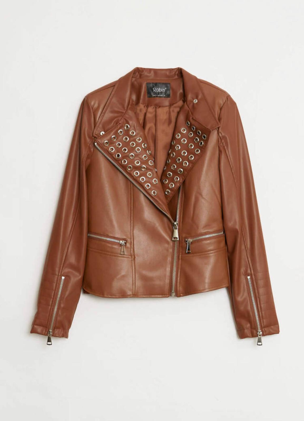 Taba Rengi Zımba Detaylı Deri Ceket